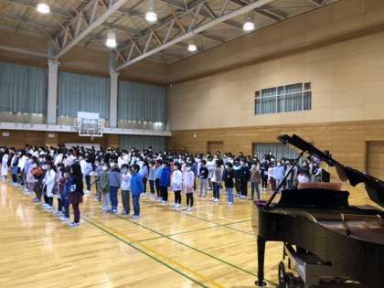 式の最後に校歌を歌いました。マスクをしながらではありますが、久しぶりに体育館いっぱいに歌声が響き渡りました。