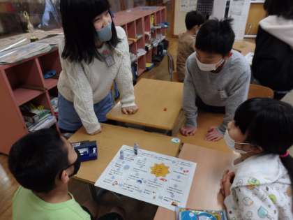 「冬休みの1番の思い出」や「お年玉で何か買った?」など、止まった項目に書いてあるお話を楽しくすることができました。