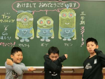 1月11日、3学期の始業式です。いよいよまとめの学期が始まりました。あおぞら級は、3人とも元気に登校してきてうれしかったです。