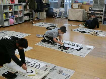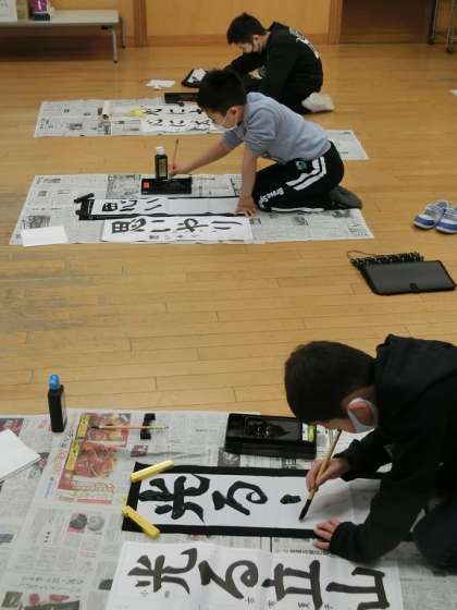 今日は、書初大会がありました。写真からは、真剣に取り組んでいる様子が伝わってきます。