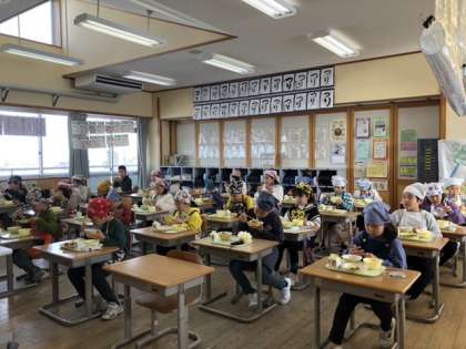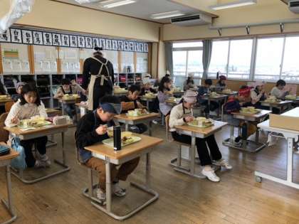 今日から給食を再開しています。もうしばらくは、前向き、黙食が続きそうです。