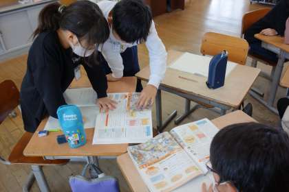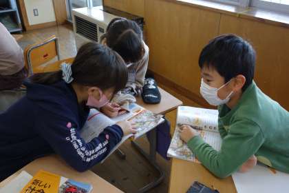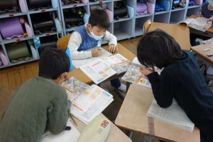 イラストを見ながら、事件や事故が起きそうな場所を予測しています。細かいところまでよく見ています。
