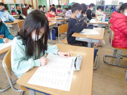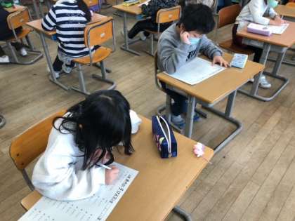 本日、宮野っ子検定テストを行いました。冬休み中に、九九の練習を頑張った成果が見られ、すらすらと問題を解いていました。