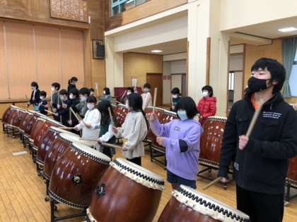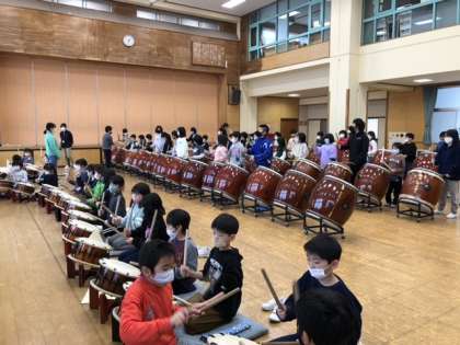 3学期第1回目の太鼓げんキッズです。今回は、3月の太鼓発表会に向けて、ロングタイムで行いました。上級生がお手本を見せ、下級生が一生懸命太鼓と向き合っていました。