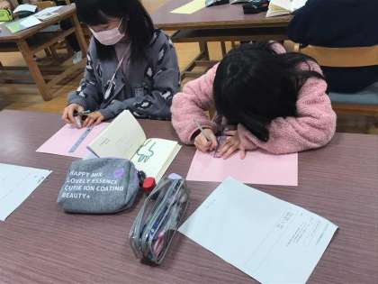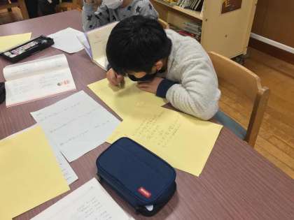 図書室でお気に入りの詩を探し詩集を作っています。
