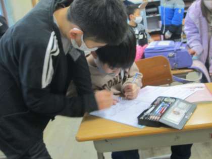 分からなかった問題を教え合っていました。もう解けている人は積極的に助ける、分からなくて困っている人は助けてもらうの関係ができていました。素敵ですね。