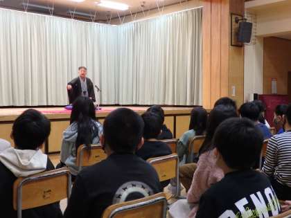 今日の3時間目に、三遊亭良楽さんにお越しいただき、落語鑑賞会を楽しみました。