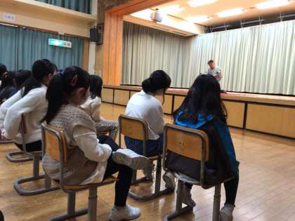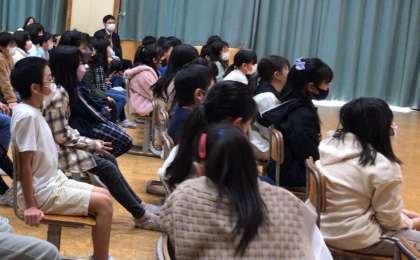 落語を聞き、どんな場面か想像していました。終わった感想を聞くと「楽しかった!」と笑顔で話してくれました。