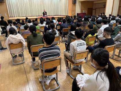 今日は、日本の伝統芸能に親しむことをねらいとして、落語を鑑賞しました。