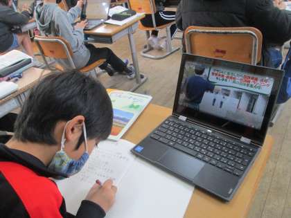警察官はどのようなことをしてわたしたちのくらしを守ってくれているのか調べました。全員で動画を見たり、クロームブックや資料で確認したりしながら調べました。