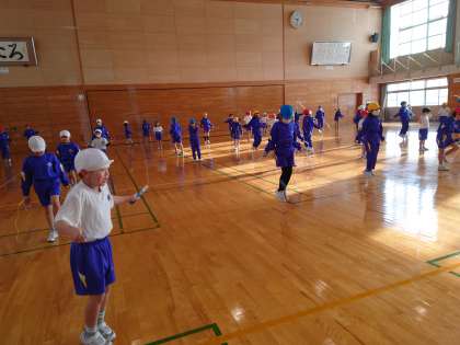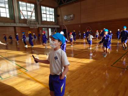 なわとびの練習をがんばっています。友達のよいところを見つけ、お手本にしました。