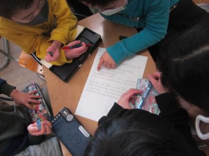 2月の新入生体験学習「にこにこなかよしかい」に向けて、準備を進めています。司会、クイズ、学校探検、プレゼントなど、一人一人役割を決めて活動しています。仲間と相談しながら、活動の内容を決めたり、準備を進めたりする姿がとても立派でした。