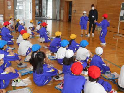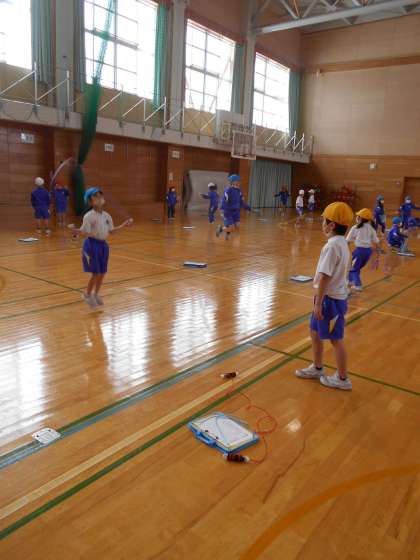 前跳びや後ろ跳び、あや跳び等の技を練習した後、ペアになって、跳べた数を数え合いました。中には、前跳びを100回以上跳べた強者もいました。子供たちは縄跳びを楽しんでいました。