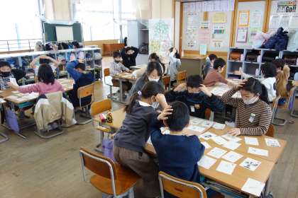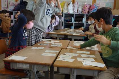 子供たちが作った音訓カルタで楽しみました。ユニークなカルタがたくさんありました。