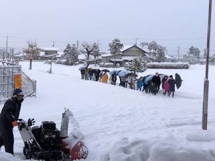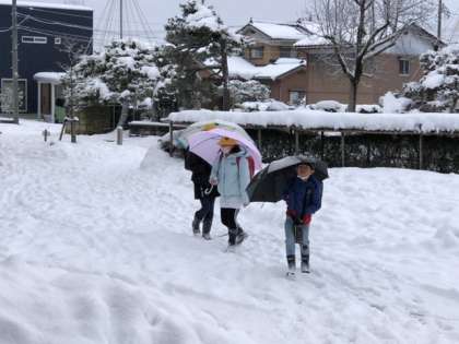 おはようございます。今朝も路面は真っ白、しかも雪の下はところどころ凍結して滑りやすくなっています。子供たちは足元を確かめながらゆっくりと登校してきています。