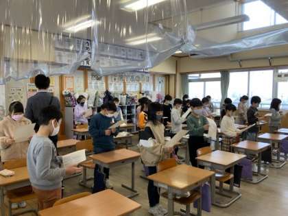 今月の歌「心が今日も笑顔」を歌い始めています。富山市の子供たちのためにつくられた大切な歌です。早く歌詞と旋律を覚えて、心を込めて歌いましょうね。