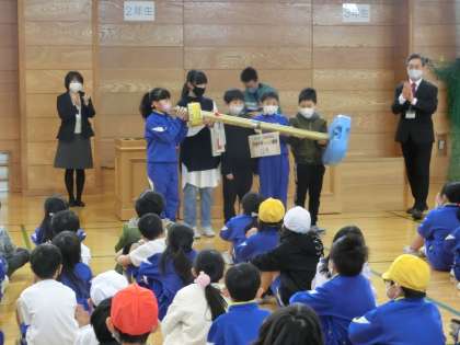 冬休み中(12月)の家庭学習チャレンジ週間の授賞式を行いました。今回は、宮野っ子検定で、前回の自分の得点より上回った(あるいは90点以上を保っている)子供の数が9割以上のクラスに送られました。今回は5つのクラスが受賞しました。がんばったクラスを讃え合い、今後もがんばろうという気持ちを高めた子供たちでした。