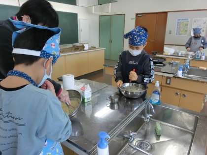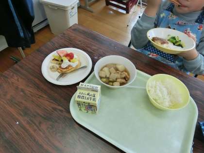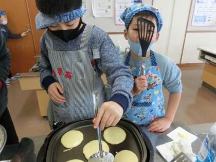 1月生まれのあおぞら級の友達のために、ホットケーキを作り、給食時にみんなで会食しました。「おめでとう!」「ありがとう」の温かい声が飛び交った給食でした。