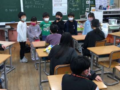 新1年生に紹介するために、練習を積み重ねている1年生に、次の6年生が教えます。