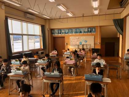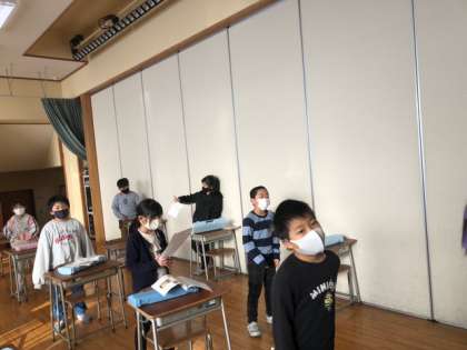 鍵盤ハーモニカは、友達と距離をとって演奏しました。新しい曲も運指に気を付けて練習しています。