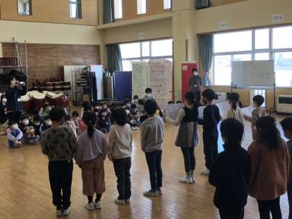 年長の子供たちをお迎えしての小学校体験入学会は残念ながら中止となっています。その代わりにDVDをつくって贈ろうと1年生の子供たちはがんばっています。今日は校長先生にも見ていただき、アドバイスをいただきました。