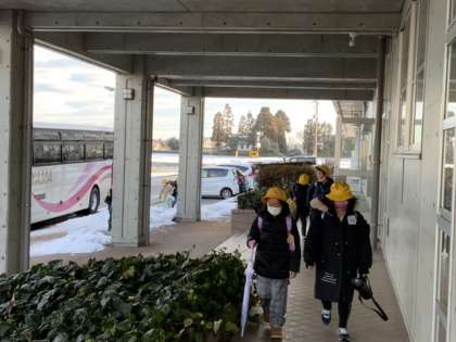 4年生以上の子供たちがスキー教室に出かけますので、今朝の集団登校は3年生がリーダーとなって進めています。