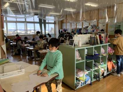 画用紙を切って大きな作品に挑戦中。