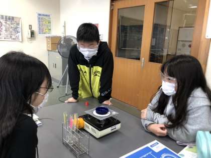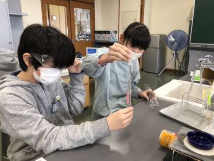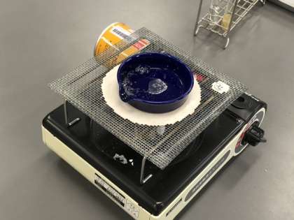 1週間試験管で様子を見ていたところ、アルミはすっかり姿を消しています。コンロで蒸発させてみると、さっそく変化が。