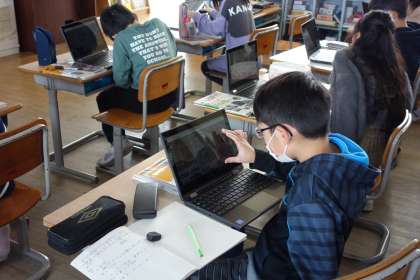 エントランスホールには宮野校区の安全マップがあります。このマップをよく見て、何がかかれているのかを調べました。