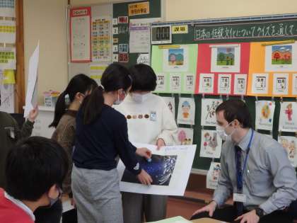 今日は、「七夕」「七草の日」「節分」グループの発表でした。なかなか伝わらないところは、織姫と彦星が出会う様子を磁石を使って表したり、節分でおにに豆を投げる様子をジェスチャーで伝えたりするなど、様々な工夫が見られました。ALTの先生は、明日がその節分だということに驚いており、日本の伝統文化について知ってもらうよい機会となりました。