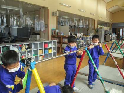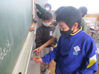 理科の学習です。磁石にはどんなものがつくのか、教室の中、周りのもので調べました。