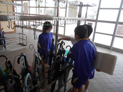 昨日に引き続き、「かずさがしビンゴ」をしました。体育館にあるボールや玄関にある傘等の数を数えていました。70、80、90等の大きい数のものを探しては数え、「あー、少ない。」とつぶやいていました。大きい数のものを見つけることを楽しんでいました。