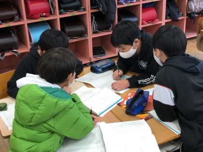 自分たちが目指す6年生に近づくために、同じ目標をもっている仲間とチームを組んで定期的に振り返りを行っています。仲間との対話を通して、共に高め合っていきます。