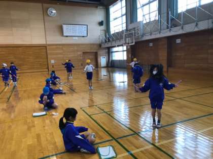 短縄跳びは、練習を重ねるごとに上手になってきました。今日は大縄跳びでは、全チームが、前の記録を更新することができました。