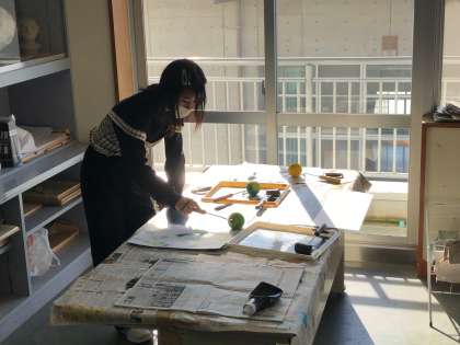写真の外側を想像する「まだ見ぬ世界」の学習をスタートしました。ローラーやチョーク、スポンジを使いながら、工夫しながら表現しています。