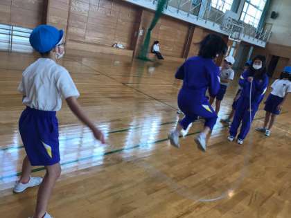 どうやったらみんなで上手く跳ぶことができるか考えながらチャレンジしました。どの組も1回目より2回目の記録が伸びています。
