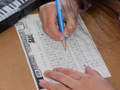 ます計算にチャレンジしています。繰り上がりのあるたし算です。