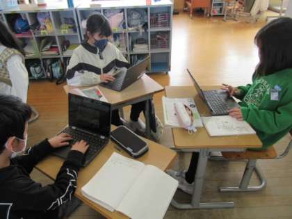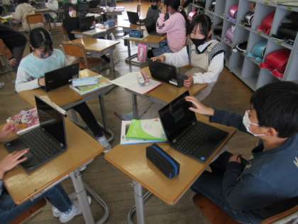 「どうして減ったのか」を考え、クロームブックで意見を出し合い、話合いました。