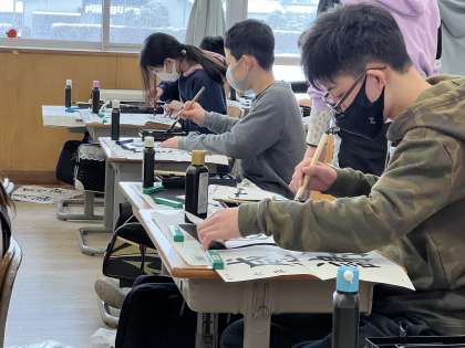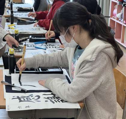 字形に気を付けて、気持ちを込めて「感謝」の清書を行いました。