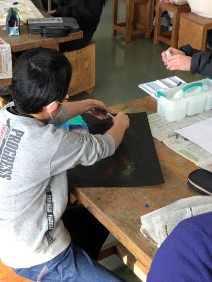 図画工作科「まだ見ぬ世界」の学習が終盤に近づいてきました。友達のよい表現を取り入れ、よりよい作品をつくろうとがんばっています。