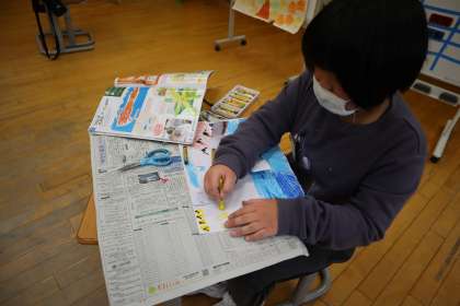 1枚目…図画工作科で海の中や空の様子を描いています。