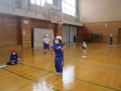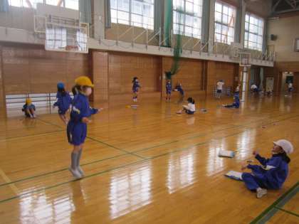 体をほぐす運動をしたり、縄跳びの記録や跳びたい技にトライしたりと、今日もたくさん運動しました!200回以上も前跳びができる子、二重跳びが3回できる子、こうさ跳びができるようになった子など、できたことに喜びを感じながら活動していました。
