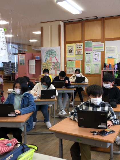 グループごとに活動をしています。 Chromebookのおかげです。