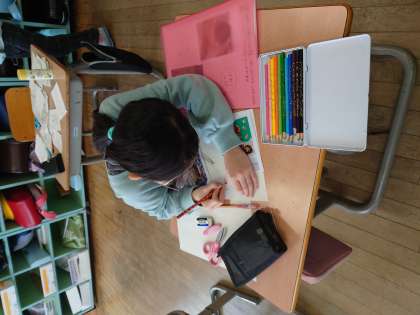 「じぶんたんけん」で、これまでの自分の成長をまとめています。
