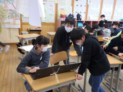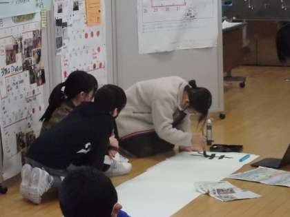 総合の時間では、卒業を祝う会に向けていろいろな役割に分かれて活動をしています。