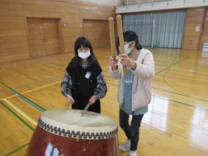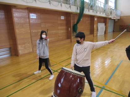 今日は、太鼓の運び方や演奏方法、リズムについて学びました。