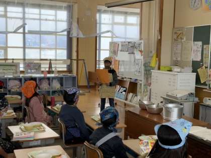 5年生が卒業を祝う週間に向けて連絡に来ました。みんなしっかりとお話を聞けました。4年生は間もなく高学年の仲間入り。5年生と力を合わせて頑張ります。