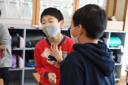 Are you ○○?の表現を用いて、友達とやりとりをしたりゲームをしたりしました。