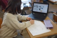 「うそ」について考えました。「ぼくも、うそをついたことあるよ」「わたしのおにいちゃんも、うそをつくよ」これまでの経験を話した後、「ひつじかいとおおかみ」の話を読みました。その後、「なぜ、うそをついたらいけないのか」について考えを出し合いました。子供たちは、うそばかりついて信じてもらえなくなった「ひつじかい」の行動をもとに、しんけんに話し合いました。