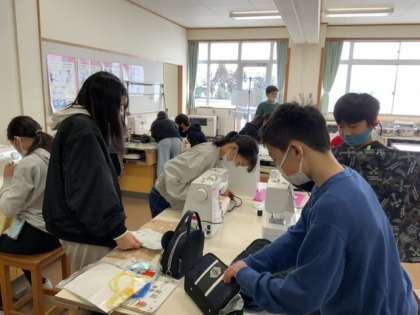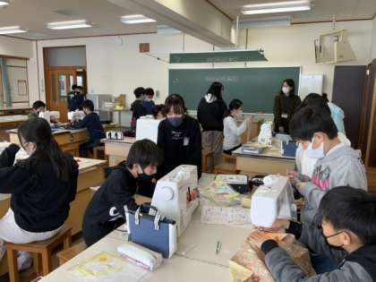 ミシンを使ってランチョンマット又はお弁当包みを製作中です。